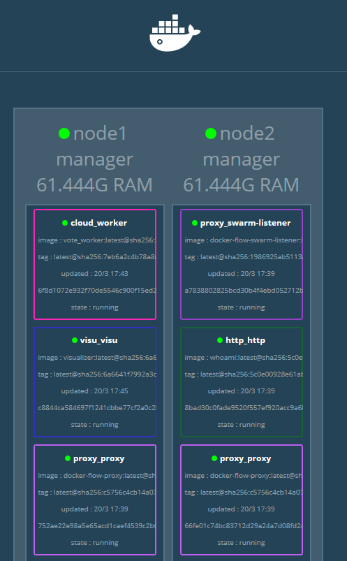 proxyservice it will be deployed on both nodes whileswarm-listenermust be on one manager node