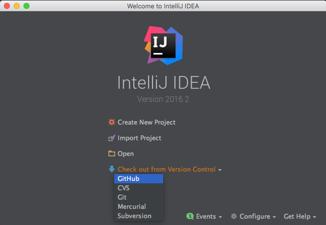 If this the first time to use IntelliJ with Github, log into your Github account.