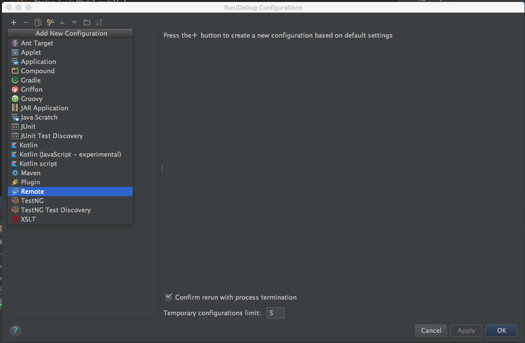 To configure remote debugging in IntelliJ, click on Run > Edit Configuration ...