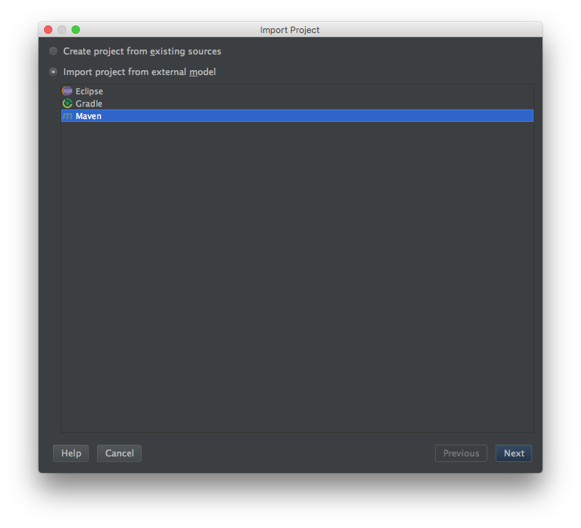 Click on Import project from external model, select Maven. Click Next